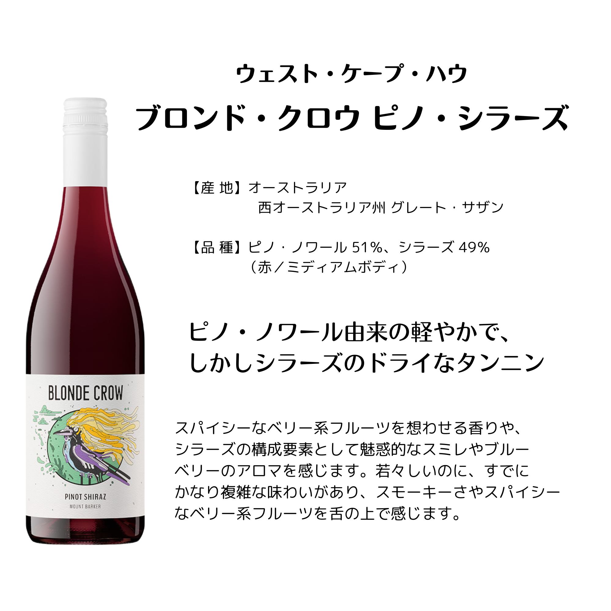「ブロンド・クロウ ピノ・シラーズ」(西オーストラリア州 グレート・サザン産)